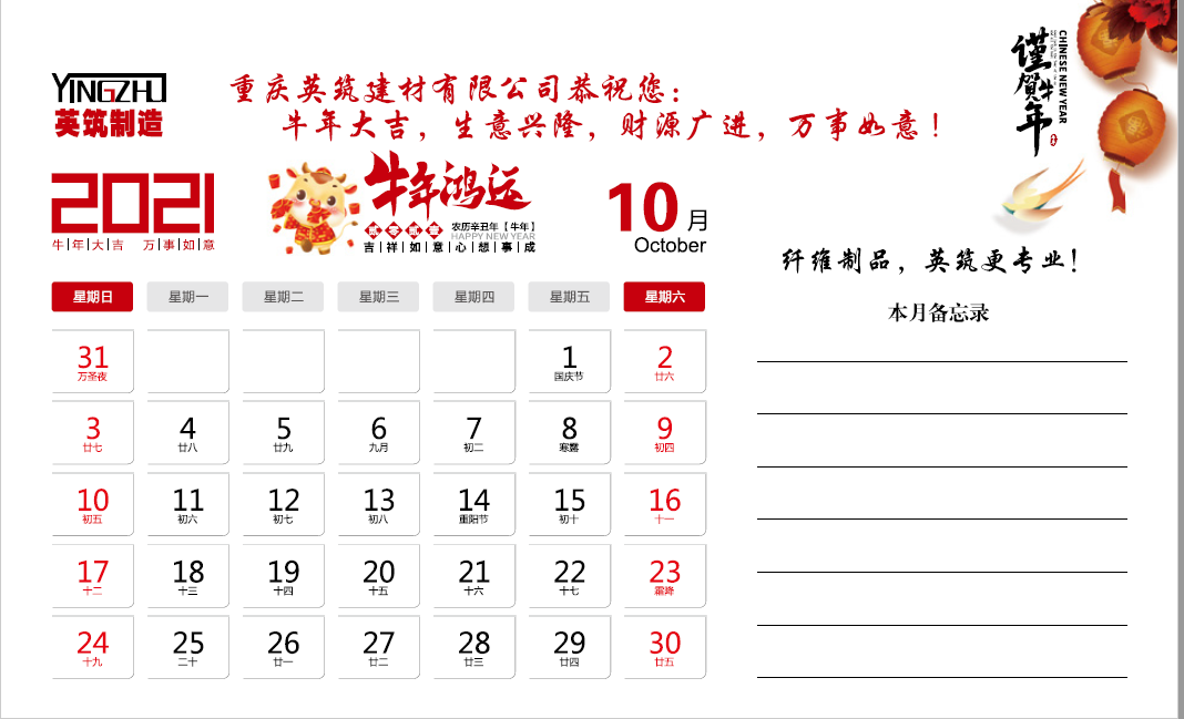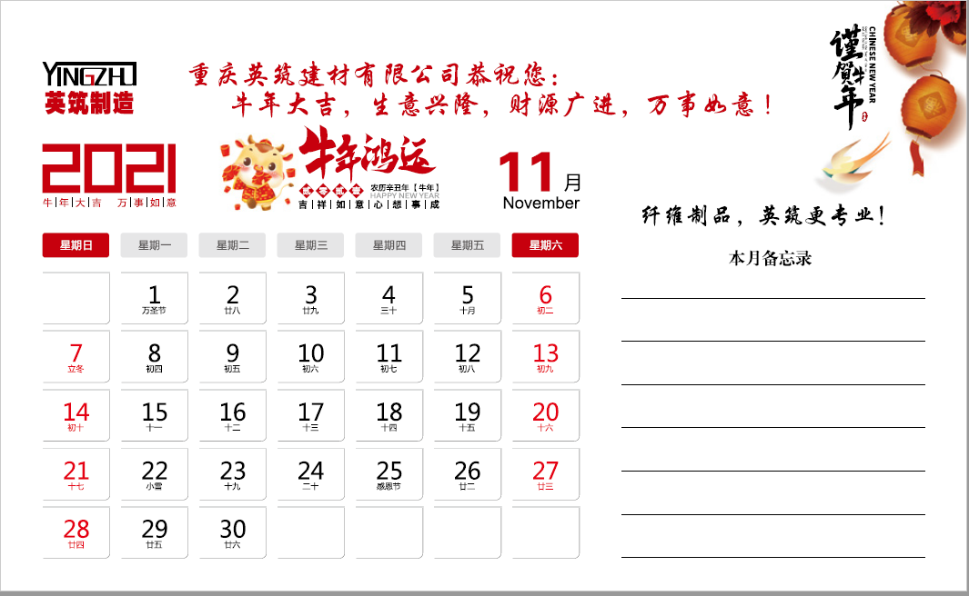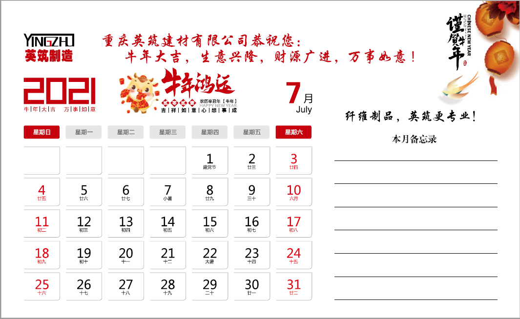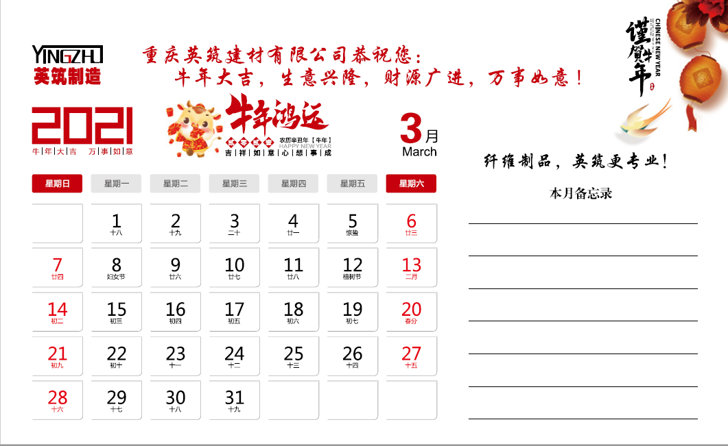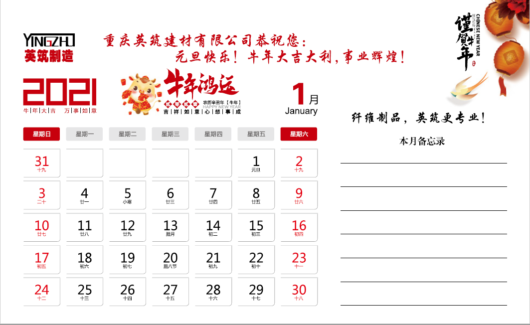 2021年重庆英筑建材有限公司台历